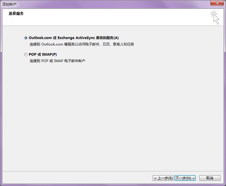Outlook 2016 手动添加账户页面截图